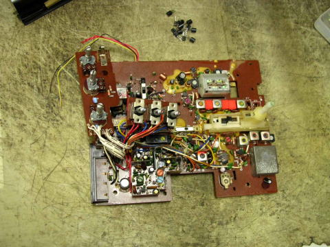 ![]() メイン基板裏面。バリバリとマグレーションがあったためトランジスタを 交換してあります。 |